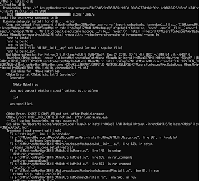 dlib를 설치하기위해서는 먼저 cmake를 설치해야한다. cmake가 설치되지 않으면 dlib설치시 cmake를 설치하라는 메세지가 나온다.